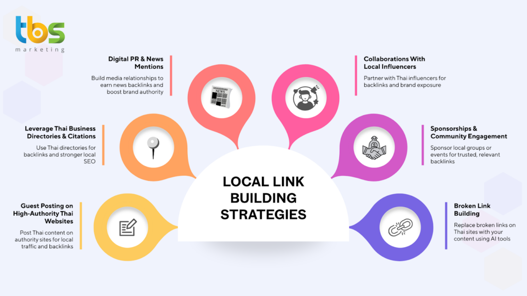 To earn local backlinks naturally, create locally relevant content that appeals to Thai audiences: